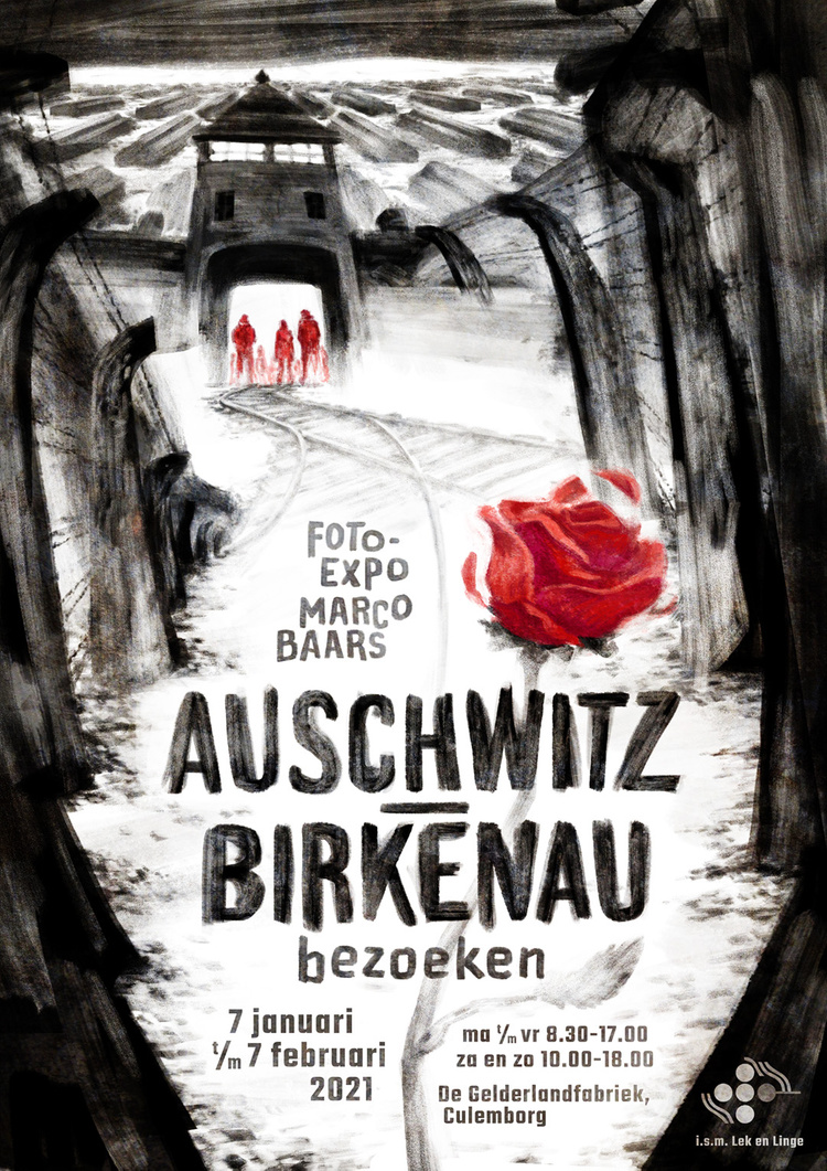 Poster design for an exhibition from Marco Baars who, together with classes of high school students, visited the Auschwitz-Birkenau concentration camp a total of 27 times. In recent years he started taking a camera along to document his visits, realizing that some day those too would come to an end.