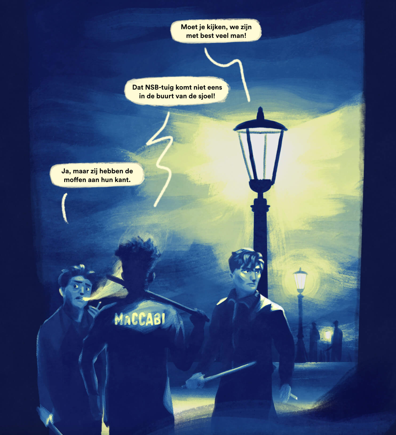 'What do I stand up for?' is the central question of De Stad Moet Plat, a graphic novel about the strike in Amsterdam and other Dutch cities in 1941. To reach a younger audience I drew colourful illustrations for this story by studio Hyper Epic.